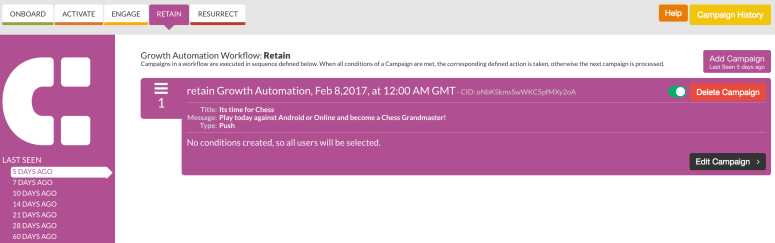 Constant engagement also requires engaging users at the right moment and leverages both rich push messages, in-app messages, and even email if your app collects it to ensure you’re reaching users at the best time using the best channel. It’s important to trigger campaigns at meaningful moments. Some examples include: